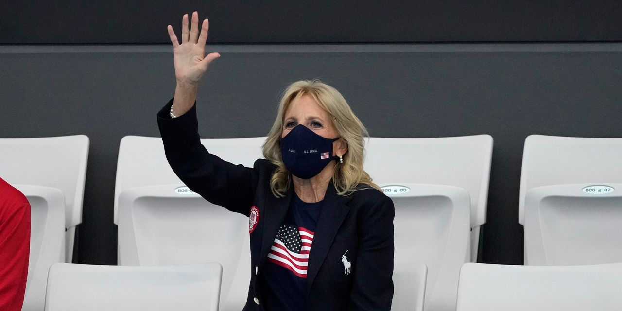 她独自飞去东京,为推迟的 2020 年奥运会的美国运动员加油助威。 她还陪同总统出访英国和罗马。