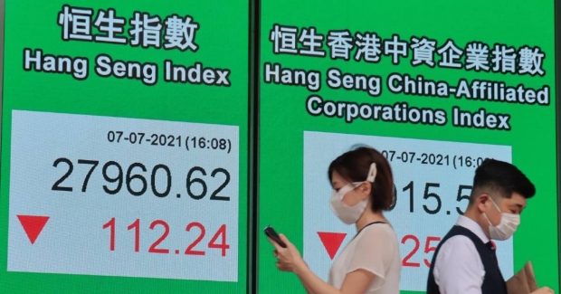 联储局6月议息纪录指官员普遍认为缩减买债规模门槛未到,美国长债持续下滑,刺激美股三大指数造好,标指纳指创收市新高,但市传出拟收紧红筹及VIE(可变利益实体)架构中资公司到境外上市,中概股沽压大下,港股连跌七日插1327点后,ADR预计港股今早会低开过百点。