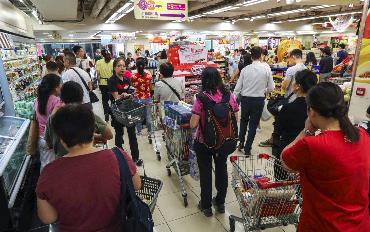 由于城市的地铁系统仍处于半封闭状态,并且在混乱袭击了该市多个地区之后,主要的购物中心保持关闭,香港购物者清空了超市货架,并在周日在自动柜员机上排队。
