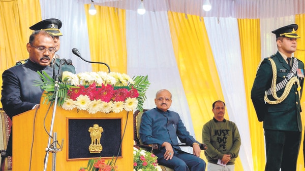 拉达·克里希纳·米什拉(Radha Krishna Mishra)周四宣誓就任拉达克(Ladakh)第一任副州长。 (照片:PTI)