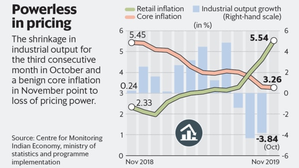 除非您种植洋葱,否则定价能力在印度已经成为过去。乍看一下最新的零售通货膨胀表明,抓住制造业和服务业活动的核心通货膨胀率在11月连续第三个月保持在3.5%左右的适度水平。