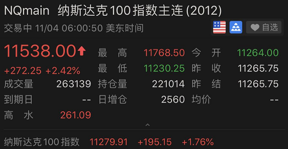 我们先来看一下美股盘前的表现,北京时间今天白天,美股指期货巨震,特别是纳斯达克100,从早上的直线拉升甚至涨到熔断,到之后的跳水,截至发稿,纳斯达克100指数期货涨逾3%。