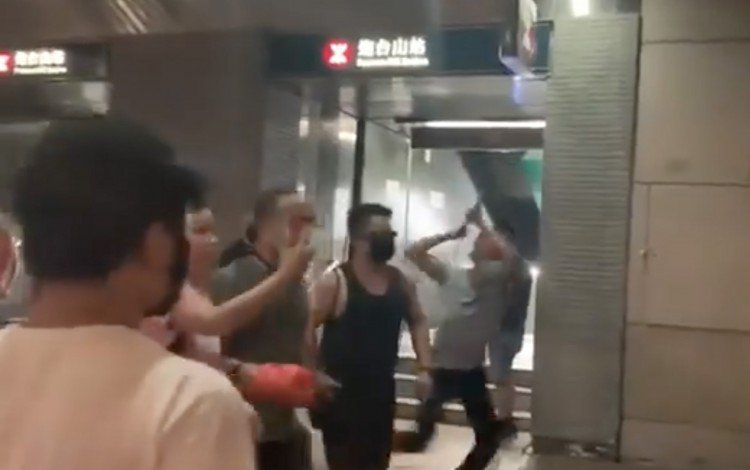 當地媒體在Fortress Hill站外發生的事件錄像顯示,午夜剛過,兩組人之間就發生了爭執,發生在幾名男子從那裡的列儂牆拆除海報之後。